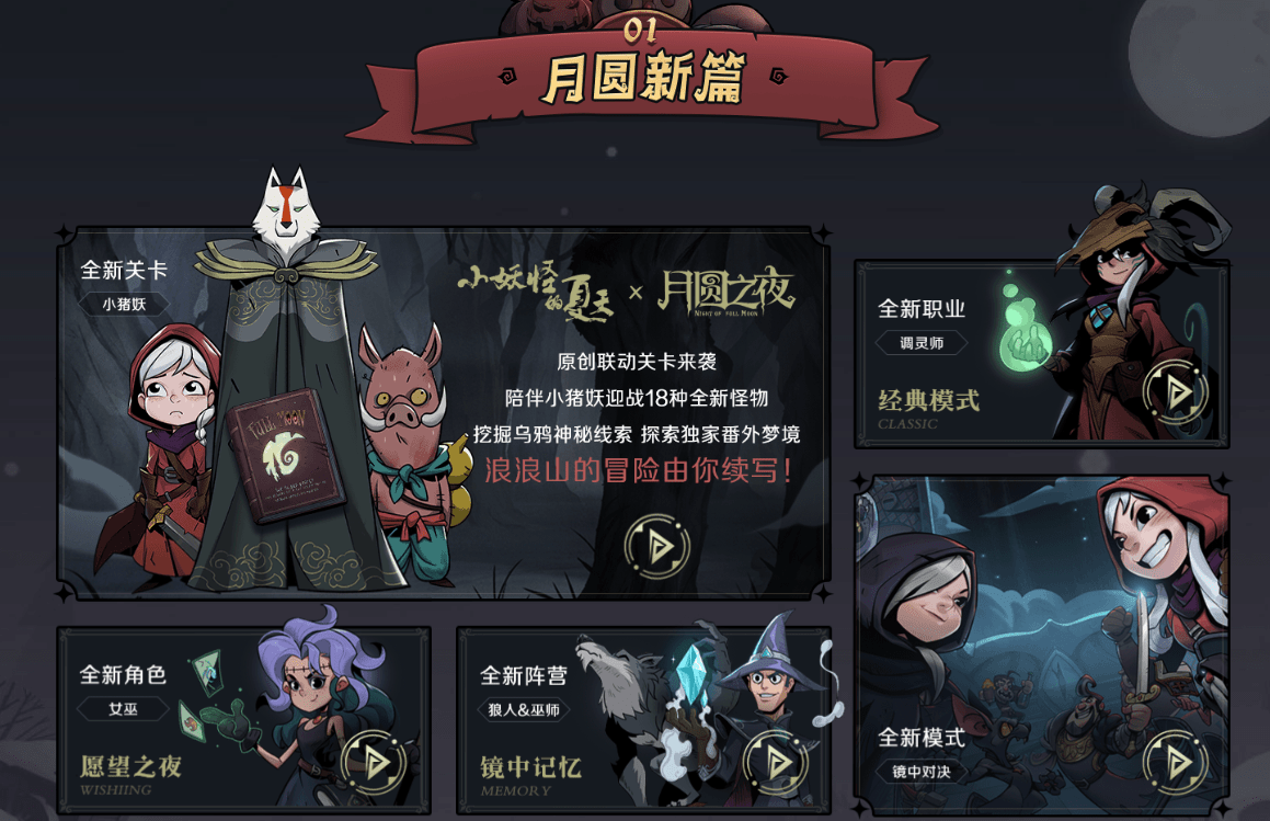 总之本次《月圆之夜》六周年一共为我们呈现出调灵师、小猪妖、女巫三个全新职业,同时还有镜中记忆里面的狼人与巫师两个新种族,海量的新玩法呈现,为我们带来更多的原创国风卡牌故事,享受顶尖肉鸽玩法的对弈乐趣。
