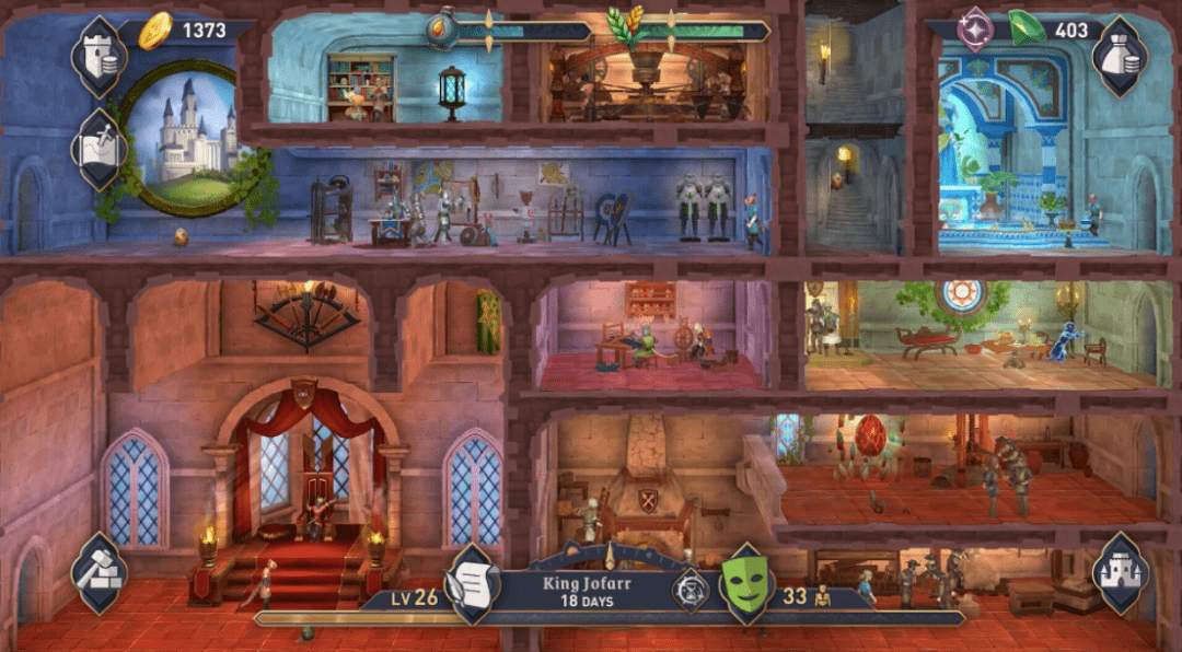在游戏中,玩家需要掌管自己的王国,管理你的子民,经年度日、发展壮大。培养他们、为他们的后代取名,保持秩序,让王国繁荣。可以从零开始建造城堡,拓展不同的房间,放置豪华的装饰物或纪念碑,让臣民们去工作获取资源。