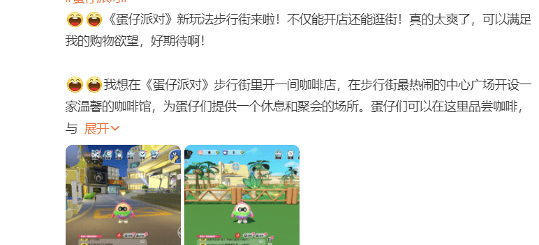 可令人没想到的是,整活专家《蛋仔派对》一条怒砸5万人民币的微博,居然就让蛋仔派对又引发了网友热议,“步行街”更是成为热门话题。