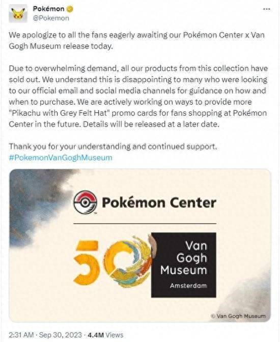 “我们向所有热切等待我们宝可梦×梵高博物馆联动发布的粉丝道歉。