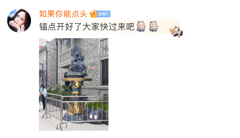 当然了,玩家来现场也不是完全干坐着聊天,梅奔现场布置了许多游戏主题装饰,即便是不听音乐会,在现场逛逛也是乐趣十足。有玩家就晒出了现场的大型锚点装饰,开玩笑表示锚点已开,想来现场的可以传送了。