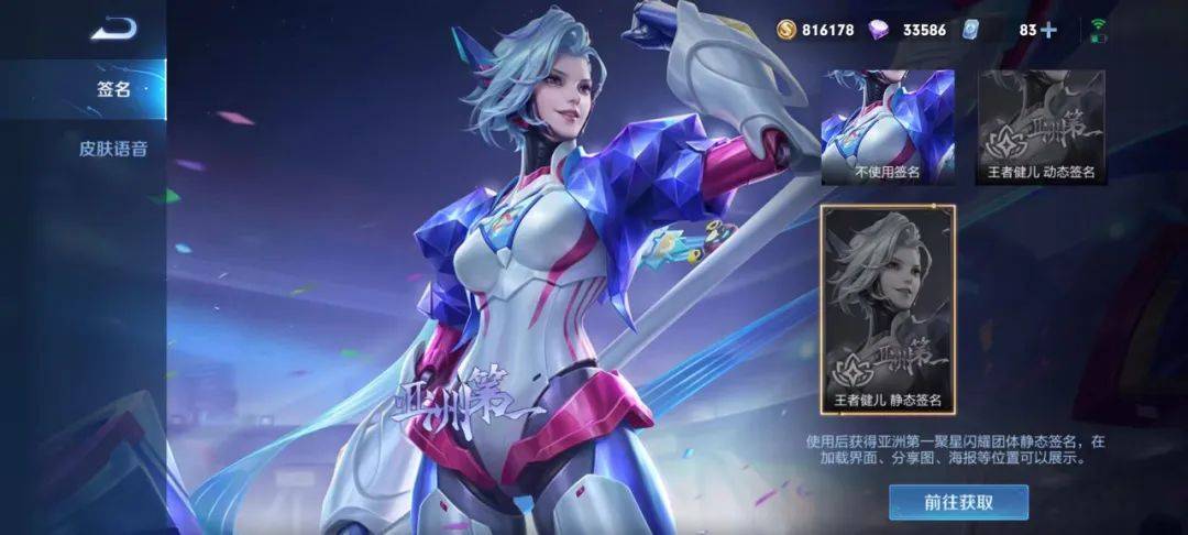 比如,钟无艳的聚星闪耀还有两套签名。一套动态,一套静态,这签名还不是什么KPL选手的签名,而是“亚洲第一”的签名。这应该不是吹牛,而是真正的实力。