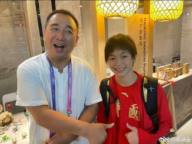 杭州亚运会的一名工作人员也晒出了与全红灿的合影。两人站在“海宁皮影戏”的介绍摊前,全红婵笑容灿烂。