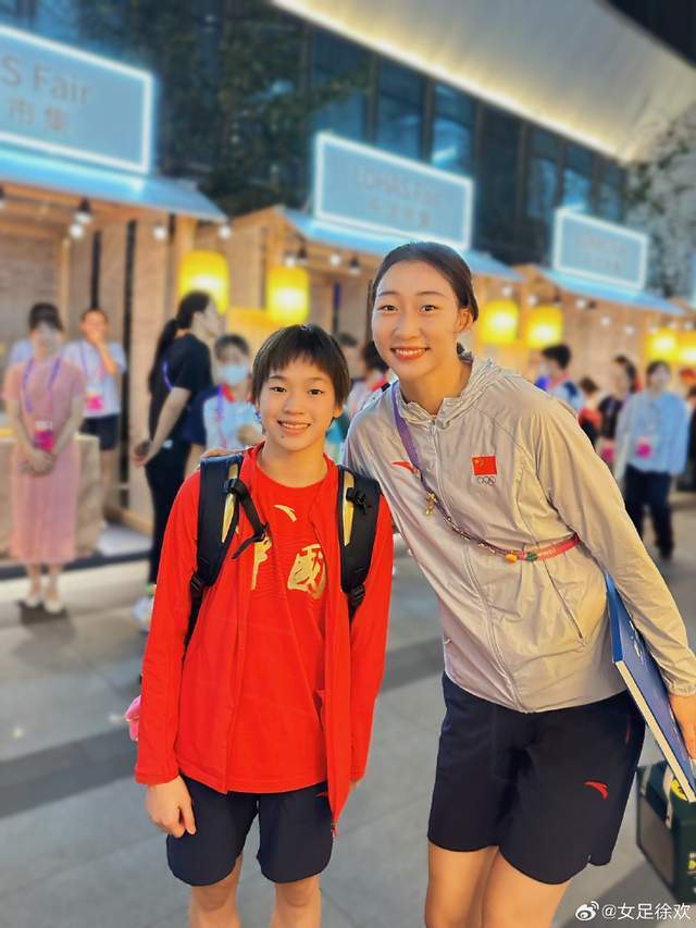 国家女足队员徐欢晒出与全红婵的合影,并表示:“和全红婵姐姐合影吧!祝大家中秋节快乐~”