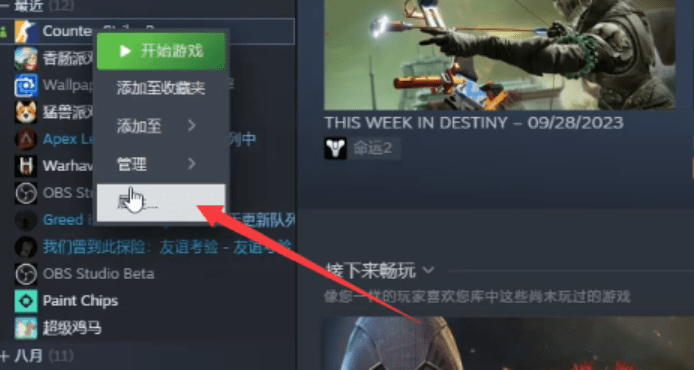 首先,我们打开Steam客户端。用ba o m iao加速器加速后打开Steam,找到我们的CS2,右键属性。
