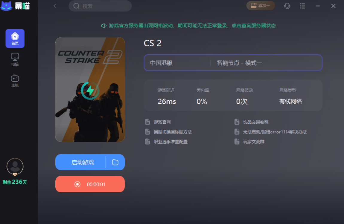 这里需要注意的是,之所以要加速cs2,是因为cs2服务器网络波动比较大,我们在操作的时候可能会遇到一些问题。所以,加速游戏后在进行操作,会比较顺畅。