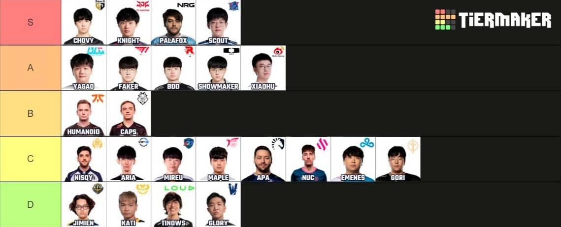 然后A级的中单大家都很熟悉:Yagao、Faker、BDD、Showmaker、Xiaohu。