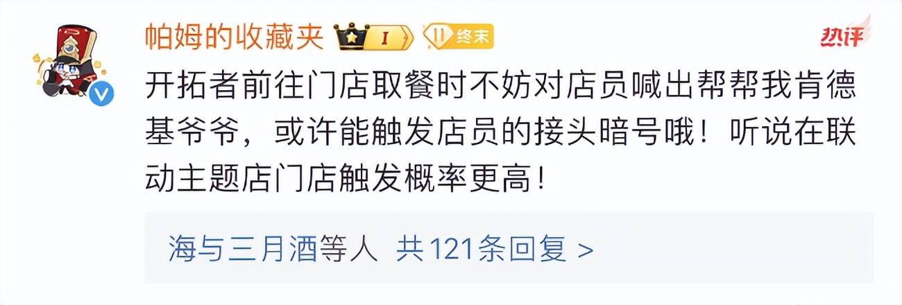吸引大量玩家去线下门店打卡,有一个原因是线下可以与店员对暗号。在活动开始前,帕姆就贴心提醒玩家,在门店点餐时喊出“帮帮我 肯德基爷爷”,就可以得到接头暗号了。