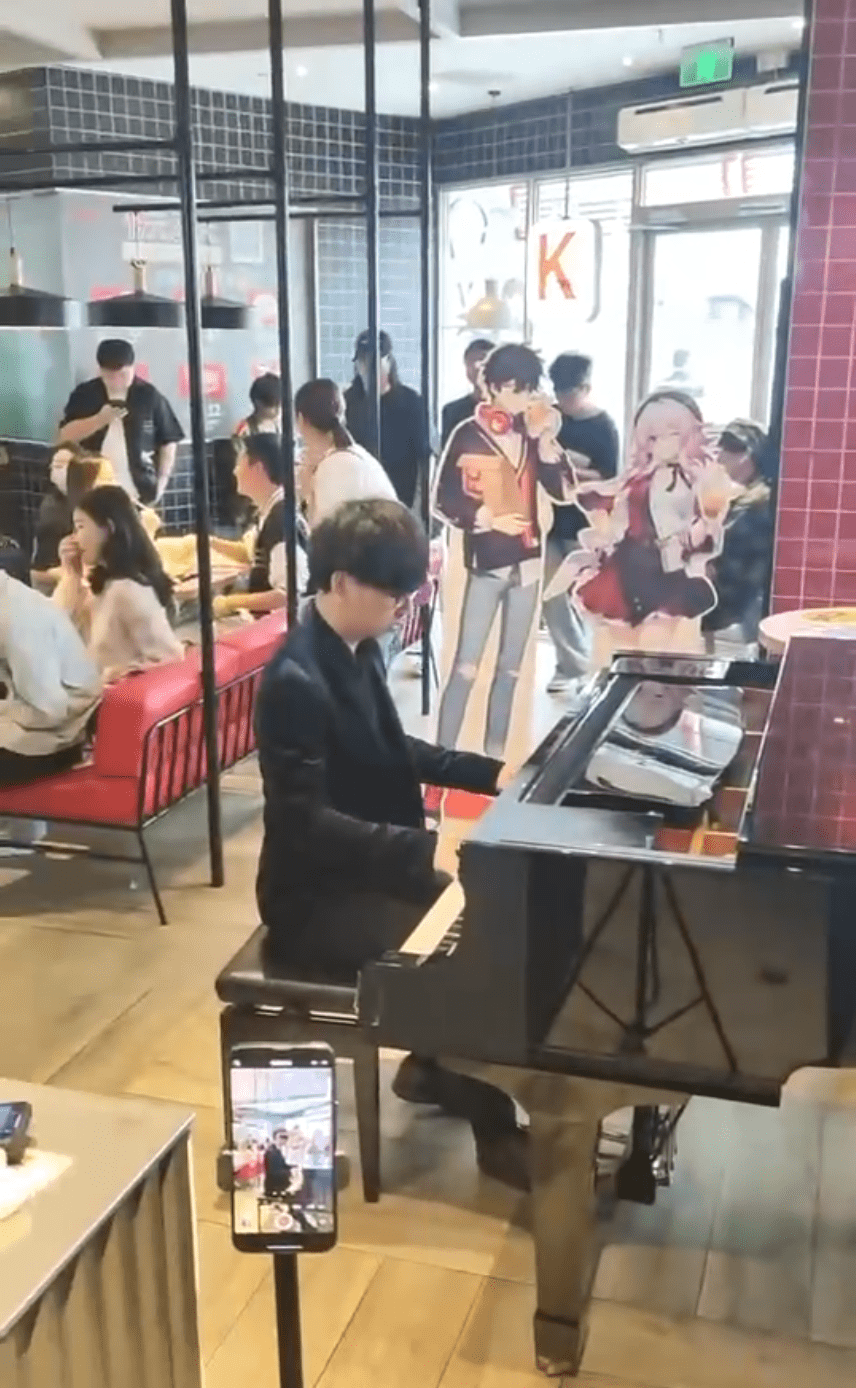 当然了,也有正经的。有位玩家就在KFC门店弹起了钢琴,弹的是崩铁游戏内的BGM,听着钢琴曲就有种想启动游戏的感觉。不过在KFC门店里面冒出一架钢琴,怎么好像有点不太对劲?