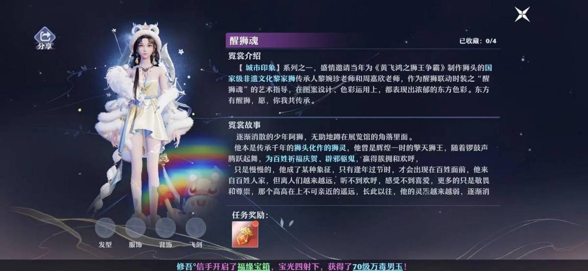 值得一提的是,“醒狮魂”甚至还拥有着自己专属的故事,是的你没有听错,《梦幻新诛仙》官方居然为一套时装打造了专属的剧情故事。在故事中,醒狮找到我们,告诉我们它感觉自己与人们越来越远,害怕有一天会彻底消失,而我们则帮助他打造除了“醒狮魂”时装,让它可以重回人们身边。估计各位也都品出来了,这说的不就是如今的醒狮文化,虽然知道的很多,但是真正见过的很少,再往后去估计连知道的都会很少了,传统文化需要弘扬和传承,这或许就是《梦幻新诛仙》项目组想要表达的,不得不说真是用心了。