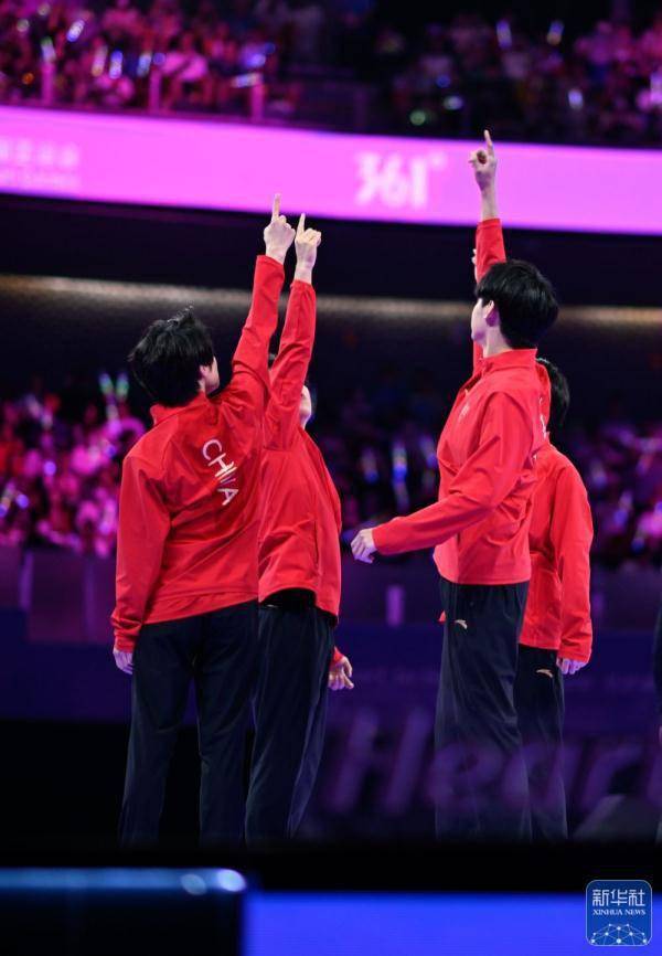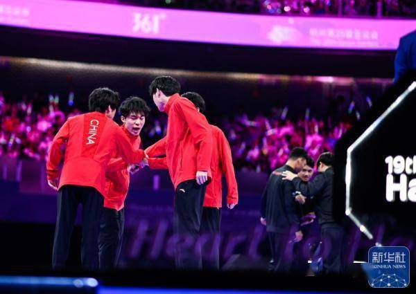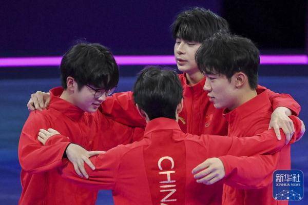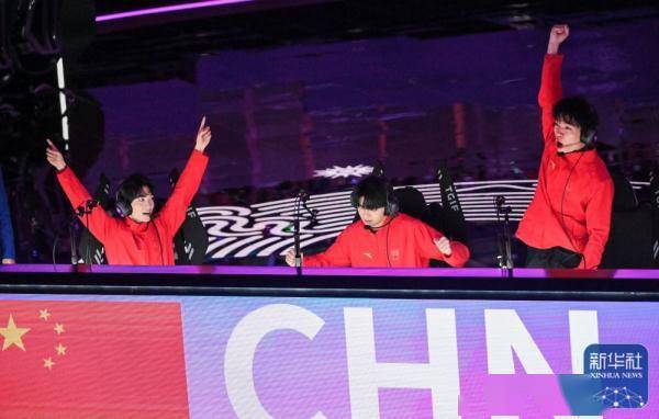 ↑中国队选手在获胜后庆祝。