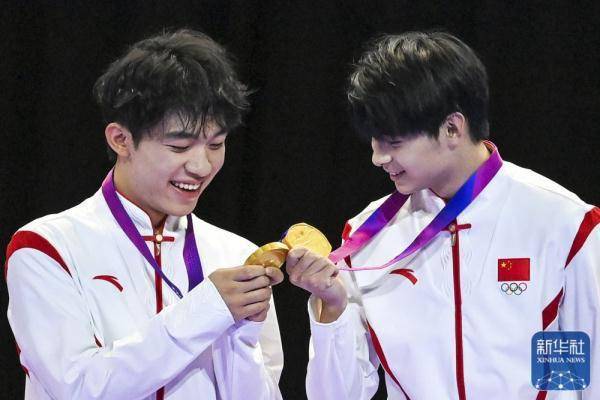 ↑中国队选手张建辉(左)与朱伯丞在颁奖仪式上。