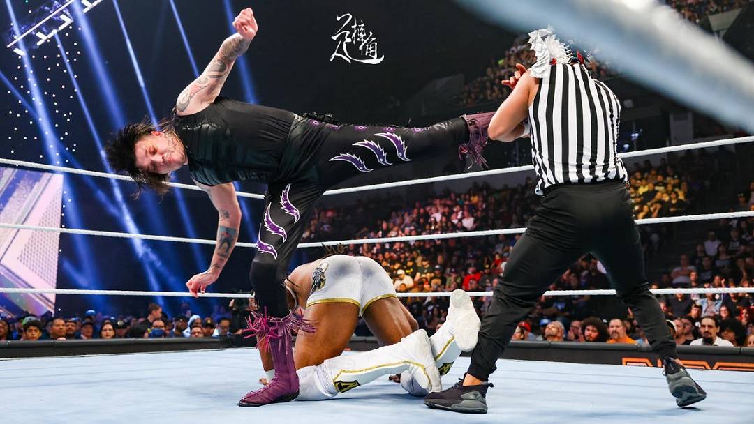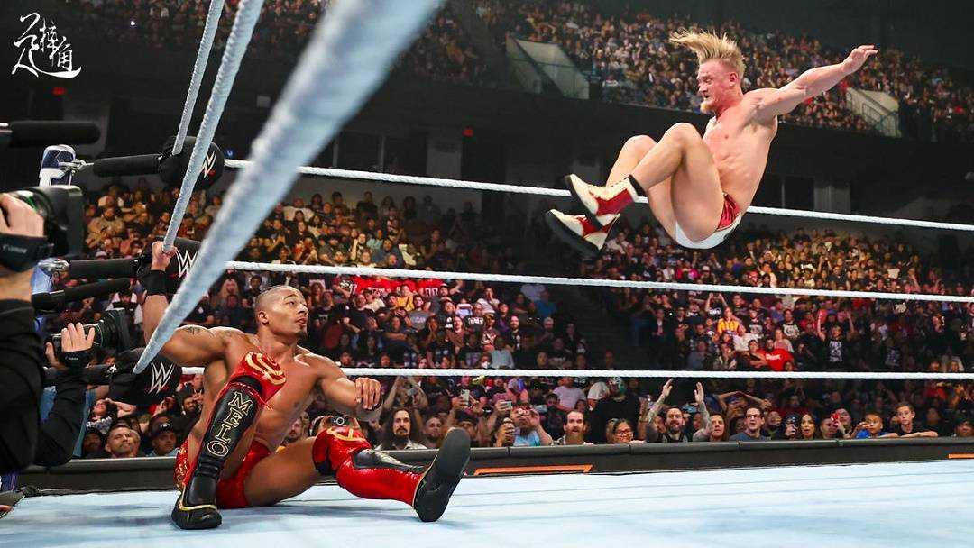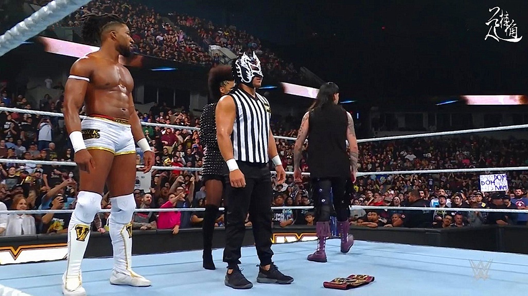 担任NXT北美冠军赛特邀裁判的龙李(Dragon Lee),也曾是该头衔的第一竞争者,所以可想而知,身为冠军的多米尼克对他有多不待见,小多米从上台的那一刻起,就开始给龙李摆脸色,比赛铃都没敲响,却已连续两次将腰带扔在地上让裁判去捡