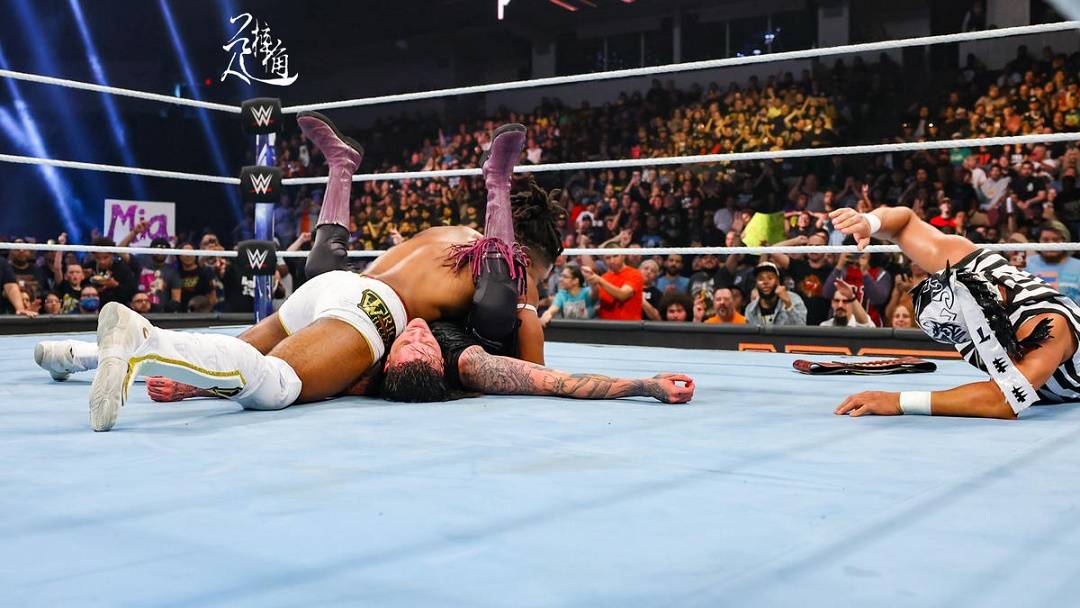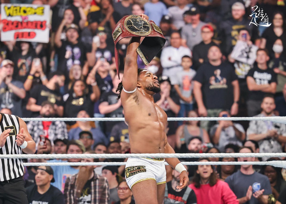 多米尼克将入场的候补裁判也打倒在地之后,又试图拿冠军腰带当武器,岂料偷鸡不成蚀把米,被威廉姆斯一个恰到好处的飞膝果断摆平,随之而来的便是在原裁判略显缓慢的读秒中,稳稳当当完成双肩压地,斩获NXT北美冠军!