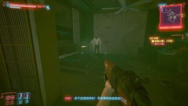 在《赛博朋克2077》里面的中期,我们主角V会碰到一个人,那便是竹村,双方密谋了一起针对于荒坂华子的绑架事件,但在这个事件发生的后期,竹村会因为荒坂公司的包围和我们主角分开,如果我们玩家选择脚底抹油跑掉的话,竹村就必死无疑了,而玩家还有另外一个选项,那便是调头回去救竹村,可与此同时,也就意味着玩家会面临更多的危险。