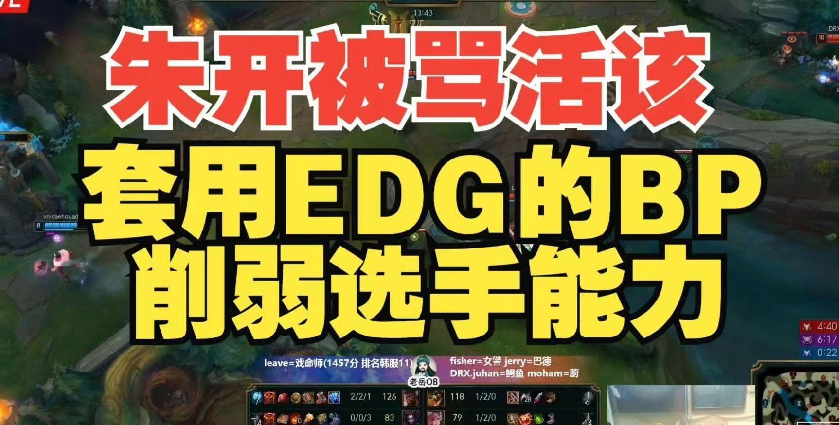同时,老岳也在出镜中怒批朱开:套用EDG模版BP,把选手能力削弱,不给选手创造环境!