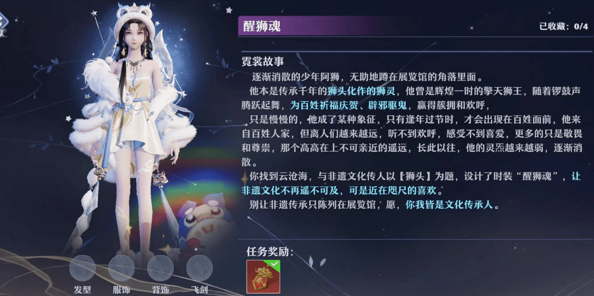 而且“醒狮魂”这款时装还有自己的专属舞狮动作和专属故事!是的没错,这套时装就是为了拯救即将被人们遗忘而消散的狮灵,所设计的,希望更多人能喜欢并理解热爱醒狮文化。最重要的是,从活动上线当天,官方就已经开始限量送时装了,如果你也想要的话,现在去看看也不晚嘛。