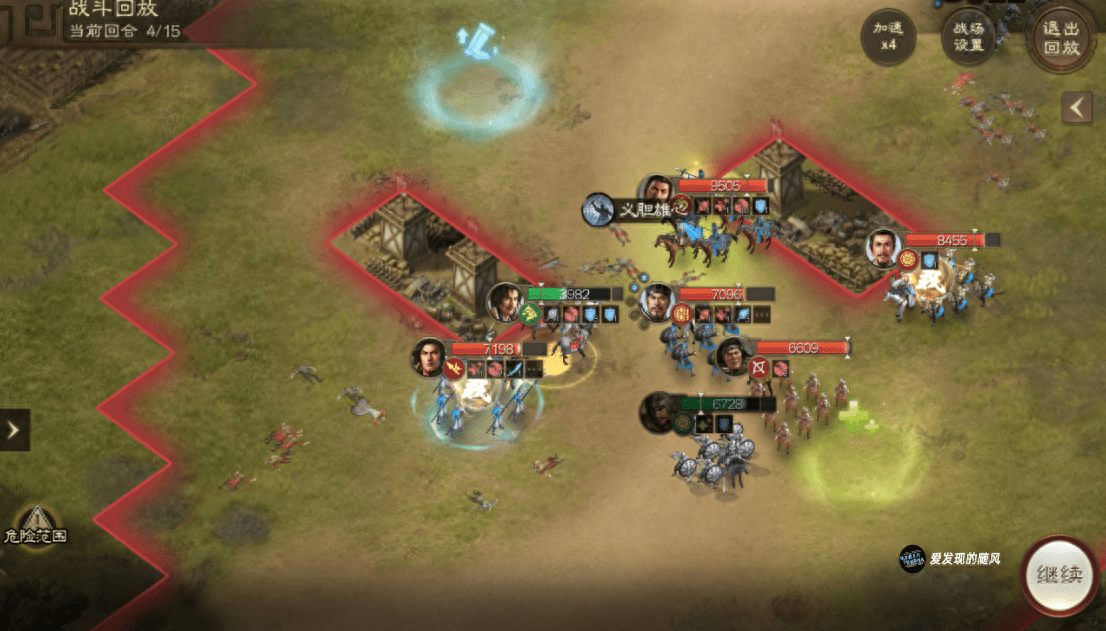 下面以一场姜维蜀骑对战三皇甘宁司马懿为例讲解一下这套三皇实战的细节,三皇这边已经是穿了一队的所以只有4.37W的兵力。