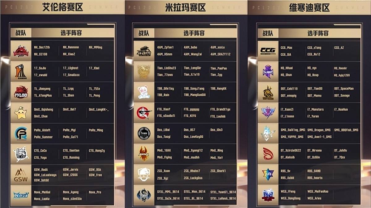 再看米拉玛和维寒迪赛区,豪门4AM、Tianba坐镇米拉玛,两支战队本次都有一个显著的特点,那就是人员变动情况较大。先看4AM战队,春季赛夺冠后,强势引入ZpYan1、Hsmm、bobo、WangZai等一众明星选手。但从这几月的效果来看,4AM最稳的似乎还是4AM_xxxlu和4AM_CRAZY112两员老将。在PGS1中技惊四座的4AM_WangZai能否延续火热状态,是他们卫冕路上的重要一环。