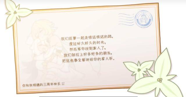 除了这个作品备受关注外,生日会里的其他单品也在全球受到了大量好评。比如生日会的最后一个作品《别让我担心》,就让不少玩家都泪目了。因为这是一首以派蒙视角为各位旅行者演唱的歌曲,歌曲中满满的都是派蒙对咱们玩家的关注?。这个被大家戏称为“应急食物”的小家伙,原来这三年来一直默默的关心着咱们旅行者,这首歌动情之处让许多网友都泪目了。