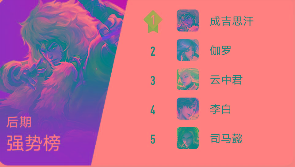 大家看在这个榜单当中,成吉思汗排在第一名,我觉得我能理解,伽罗排在第二名我觉得是实至名归。