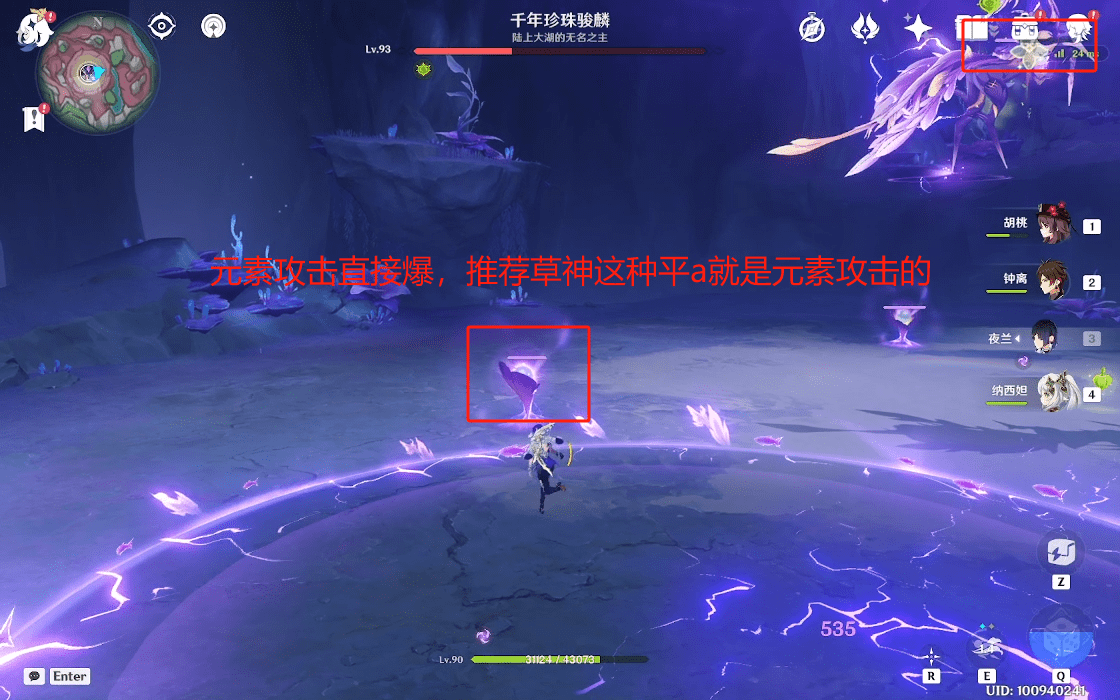 第二种瘫痪路线:当boss的雷珠子进入残血时,它有可能飞到天上下雷,这时使用元素攻击地面的雷机关,这个机关很脆一摸就碎,推荐平a就是元素攻击的角色,例如草神,凝光。