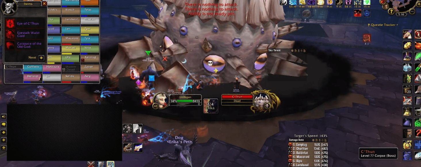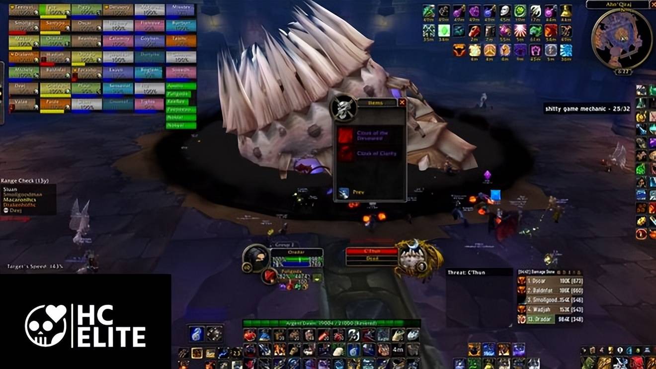 《魔兽世界》官方硬核模式的克苏恩被首杀,创造记录的是迪菲亚抢劫者服务器的“HC Elite”公会。