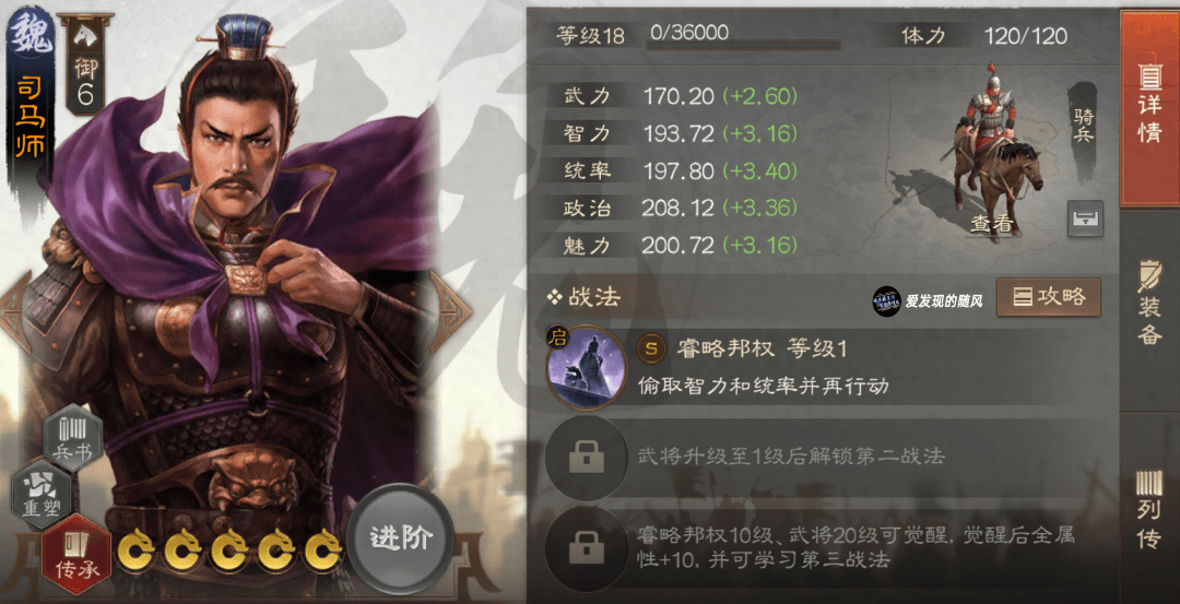 司马师,一个魏国的百搭辅助,可以携带士别三日+骄兵之计这样的战法打输出,也可以携带智计+百折打纯辅助。