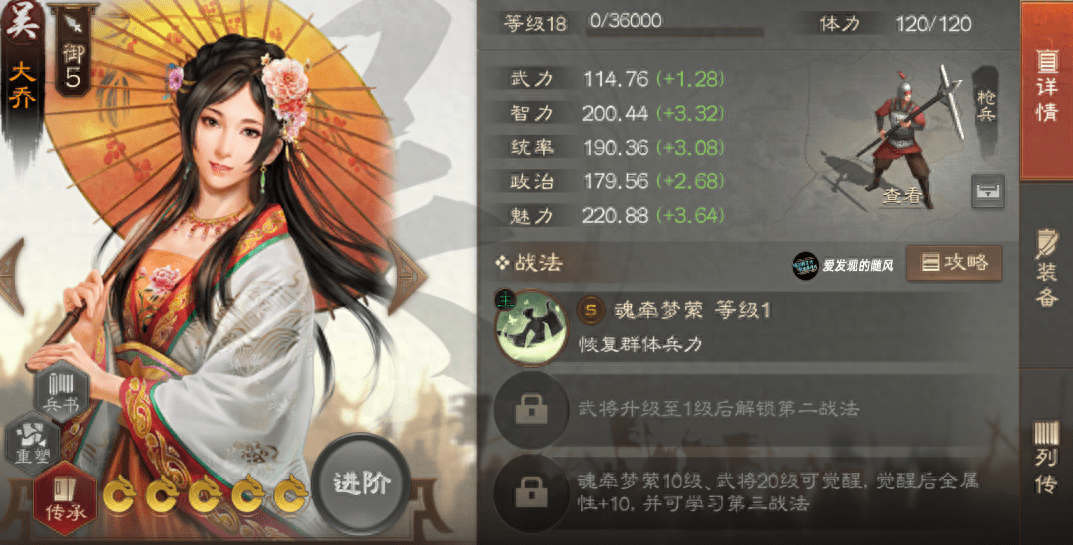 而且这个武将人手起码一个,因为一赛季签到会送,吴国很多队伍都能用到大乔,非常好用的治疗武将。