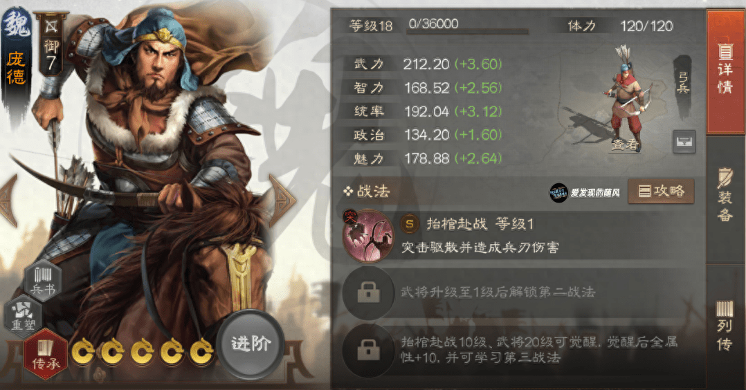 携带裸衣血战+鬼神霆威的庞德输出十分吓人,如果再有王佐之才的辅助,庞德的输出就更加暴力了。