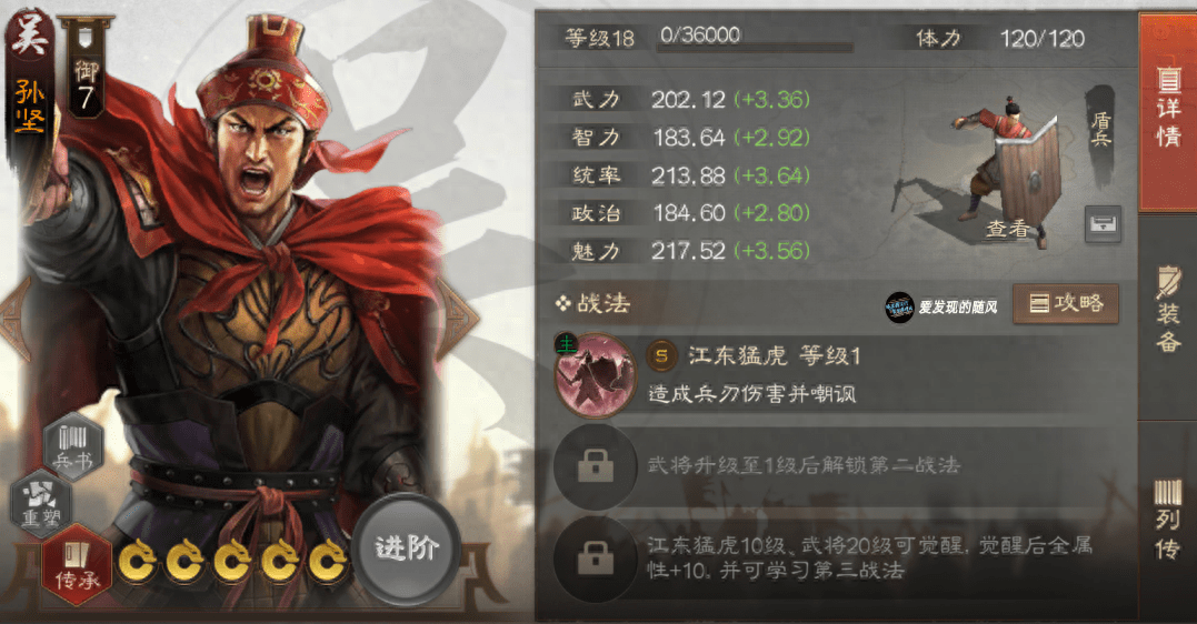 孙坚,一个超强力的盾兵控制武将,自带1CD的嘲讽战法,配合纵兵劫掠能让敌军一个单位三回合都动不了。