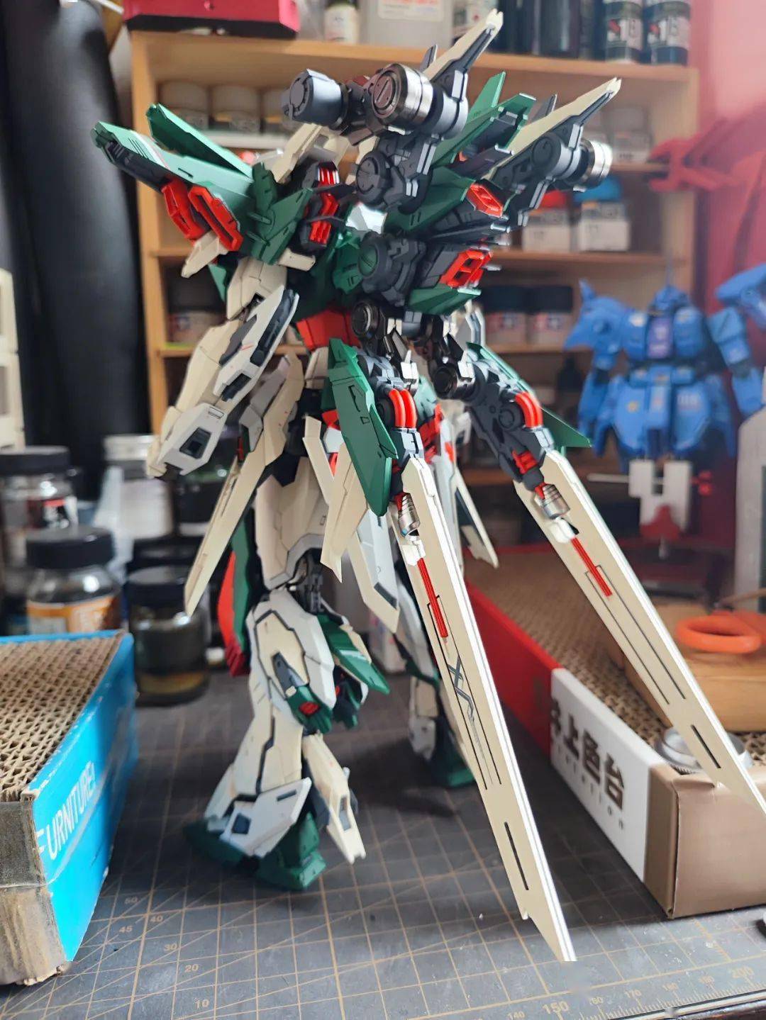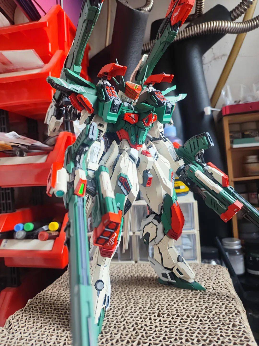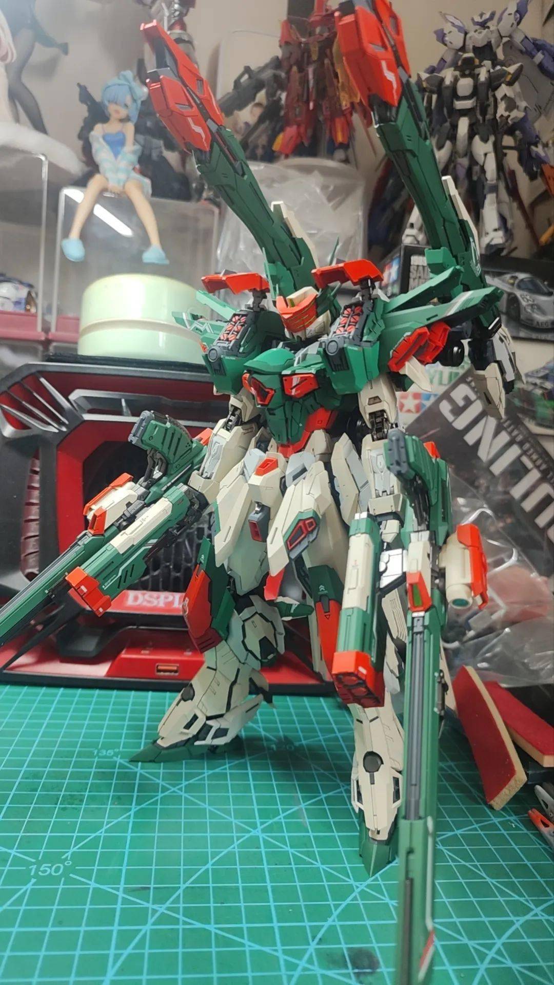 随着近期无限新推出了新机体雷霆,索性赶紧把堆积很久的裁决给清掉,这款机体很多大佬都测评过,就不一一赘述。配色方面想了想还是随大流弄个翠绿配色看着更舒服点,本次额外把原配的脑袋更换成了当年全工的GK头,整体看起来也更有味道了。整体配色方面用白色+沙漠黄调了主体白色,绿色用了骑士漆当时喷力天使的绿6绿7加自己又调了调。因为没有影棚,所以就简单照了照,各位见谅!
