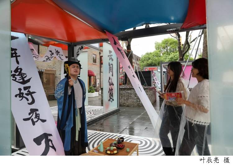 今潮8弄还与沪上汉服文化品牌“上海汉潮文化工作室”合作,推出“诗经演”汉潮?国风快闪体验店。这里引入了魏晋、唐宋等款式汉服,并提供体验、妆造一站式服务。游客七七特地来这里花了一个多小时完成了整体妆造。她感到,这样的装束更适合中秋、国庆这样的假日,而且“多巴胺”风格的色彩搭配也很贴近年轻人的喜好。