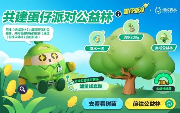 《蛋仔派对》×蚂蚁森林联动正热烈进行中,相信各位蛋仔玩家的努力,一定会成为开花结果的参天大树!如果面前的你对公益林活动感兴趣,不妨搜索下载《蛋仔派对》,为这次共建公益林活动,增添一抹靓丽的色彩吧!
