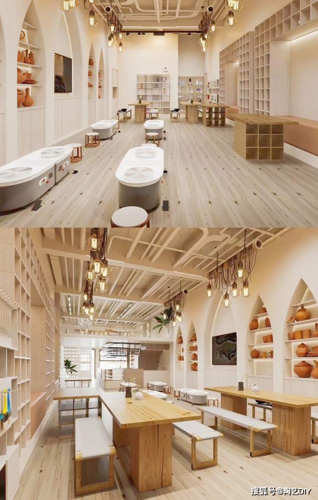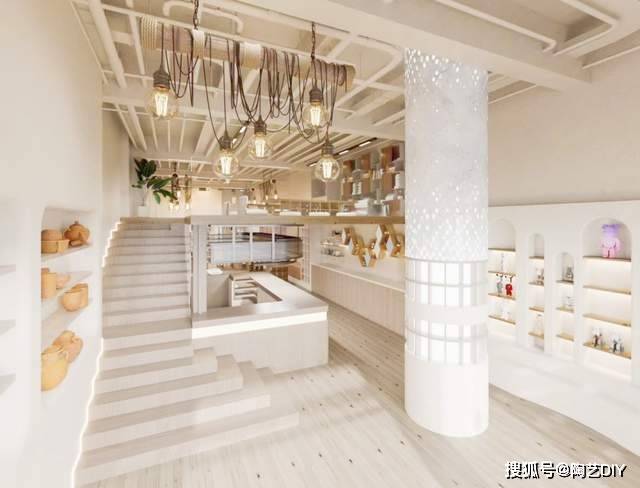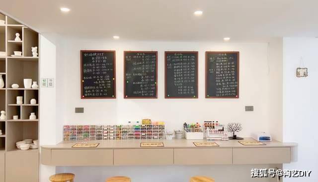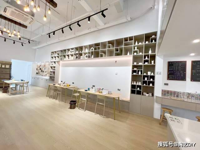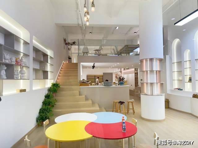 超大空间170㎡的店内,布局简约明了,一楼主要是供人DIY体验,二楼则被划分为了惬意的休闲区,玩累了可以点上一杯饮品,小憩片刻,安静地看会儿杂志,或听听音乐,放空自己~