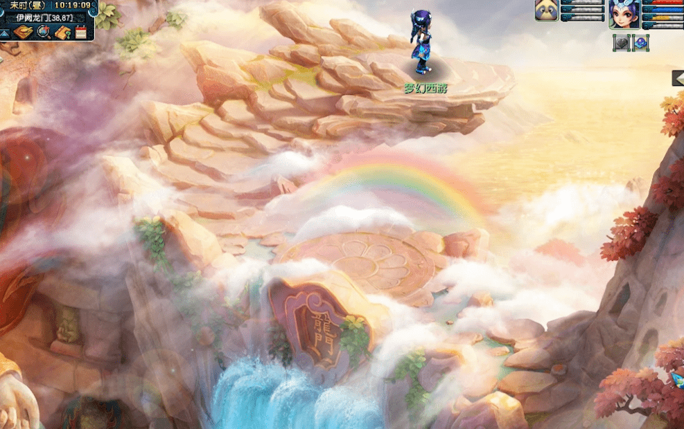 在本次联动新推出的地图场景当中,我们沿着道路一直往上走便会看到伊阙龙门,只见伊河之水通过龙门顺势而下,好似龙宫门派的招牌技能“龙卷雨击”,场面震撼。当我们走到路的尽头时,会发现自己正处于龙头之上,整条山路也化身成为了龙的庞大身躯,正在穿过天边的一道七色彩虹,感觉稍不留神这条巨龙便会腾空而起。