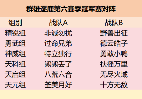 经过五轮的激烈对决,《梦幻西游》电脑版群雄逐鹿第六赛季冠军赛的最终名单已经确认,让我们先来看看最终的对阵情况吧:
