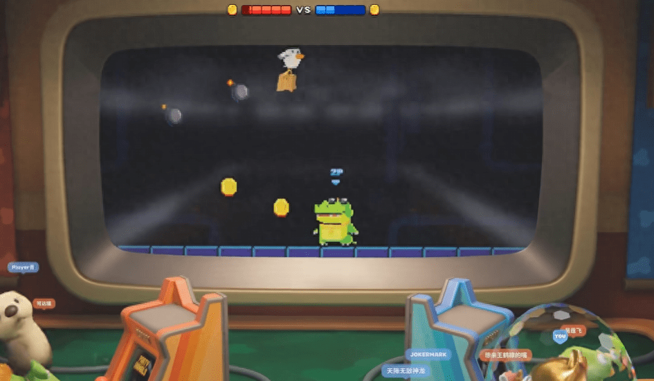 例如在“进入游戏”这张地图中,玩家需要为团队抢夺游戏机,成功抢到游戏机后,操作游戏机玩小游戏获取一定分数即可达成胜利,这场景颇有小弟当年到网吧抢位置的架势。