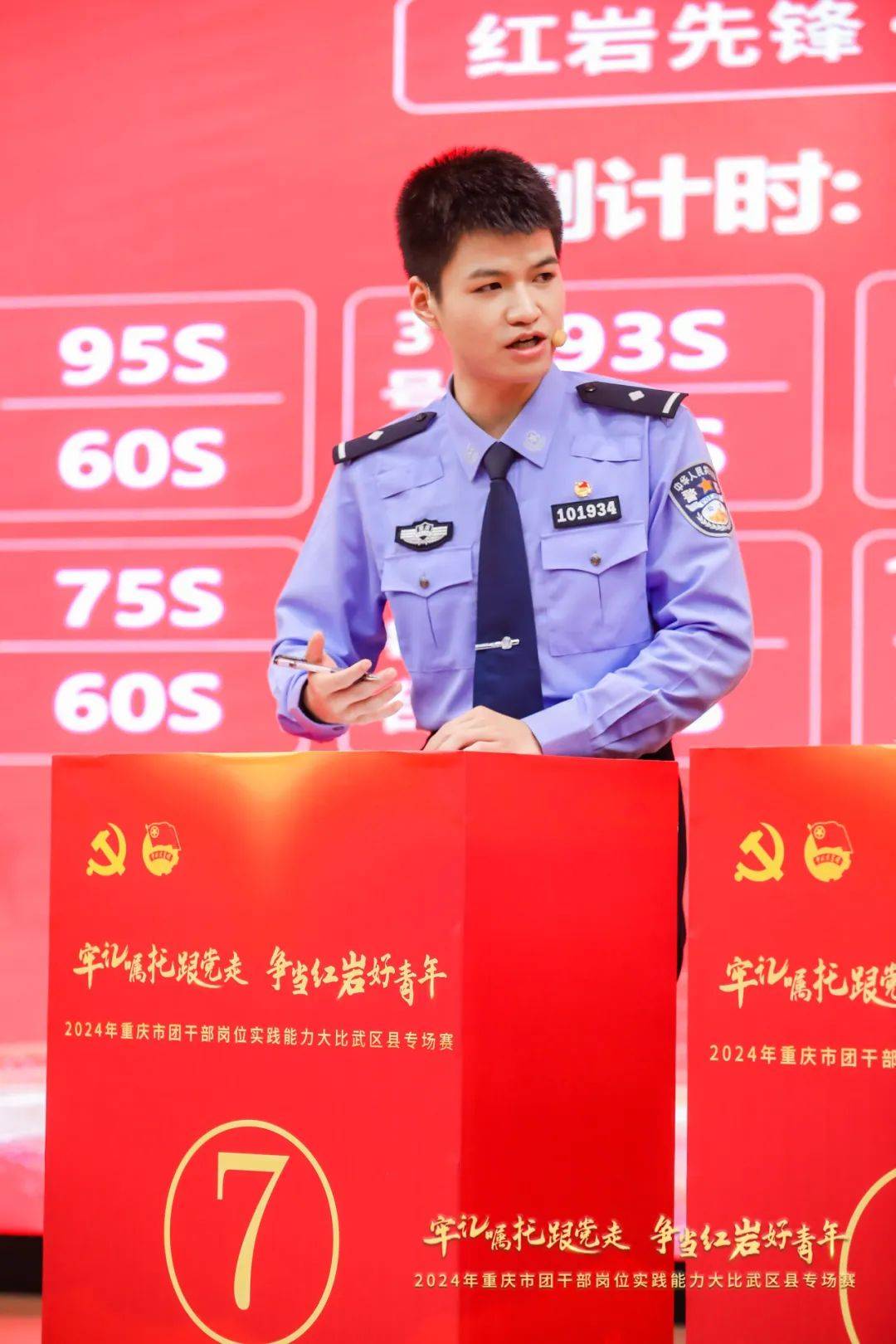 8月7日下午,2024年重庆市团干部岗位实践能力大比武区县专场赛在梁平区青少年活动中心举行。本次比赛自今年5月份启动,历经线上答题闯关、集中测试、专题教育培训等层层选拔,来自各区县的12名团干部脱颖而出。专场赛现场,12名团干部轮番登台,经过“红岩先锋·大讲堂”、“红岩先锋·大讨论”两轮精彩比拼,渝中区公安分局团干部霍重臣获三等奖!