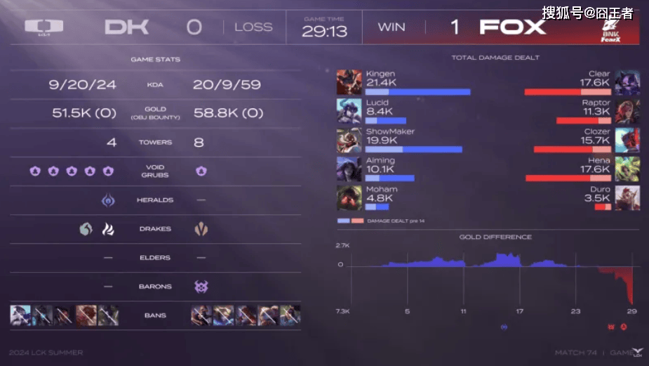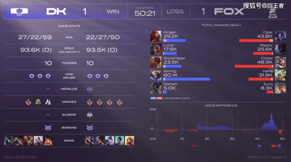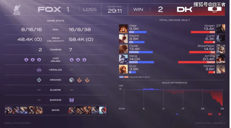 DK让一追二击败FOX拿下比赛胜利,而在本场比赛后DK也成为继GEN、HLE后第三支锁定LCK夏季赛季后赛资格的队伍。而FOX则需要对决KDF,HLE,T1,再来决定,他们是否有资格晋级季后赛。