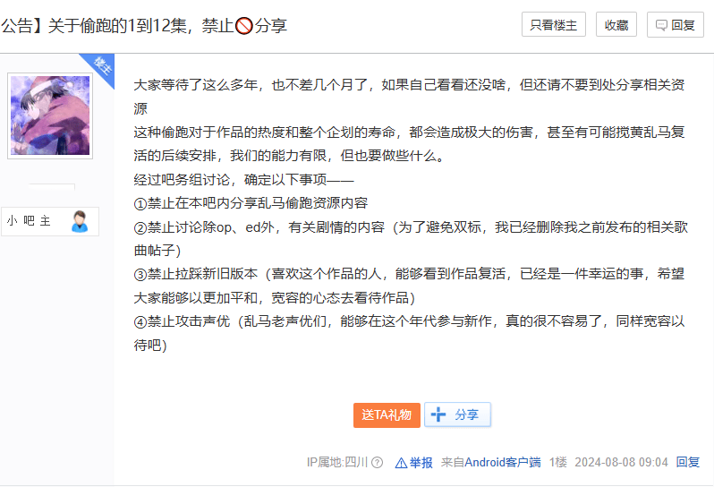 面对偷跑,乱马吧的管理人员发布了贴吧新规则,并且进行了置顶。