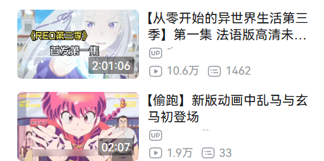 目前姬在国内视频网站上发现了超多的偷跑资源,包括《超自然武装当哒当》《终结者 零》《新乱马》《从零开始的异世界生活第三季》等。偷跑还不止是一两集,诸如《新乱马》,被一下偷跑了12集,整整一季的量。