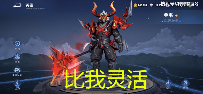 这是一位战士型打野,自从被策划加强之后,典韦的强度和登场率确实提升不少,特别是一技能增加位移效果之后,典韦具有很强的粘人能力,该英雄三个技能都自带净化,并且解除自身的控制和负面影响还能提升自身攻速和伤害,配合大招的真实伤害,满级的典韦强度不容小视,但是典韦面对一些刺客型打野的时候,还是显得有点笨重。
