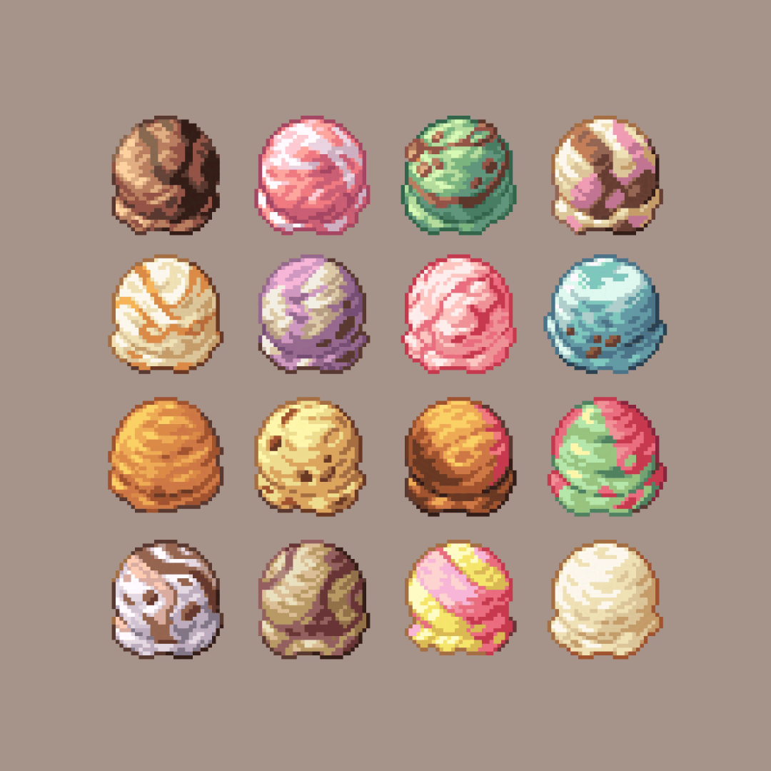 1. 各种口味的冰激凌,你想先吃哪个?(twi: PixelArtJourney)