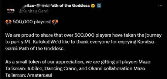 卡普空新作《祇:女神之路》官推宣布本作玩家人数突破了50万:“我们很荣幸地宣布,已有超过50万名玩家踏上了净化祸福山的旅程,我们非常感谢大家对《祇:女神之路》的支持。”