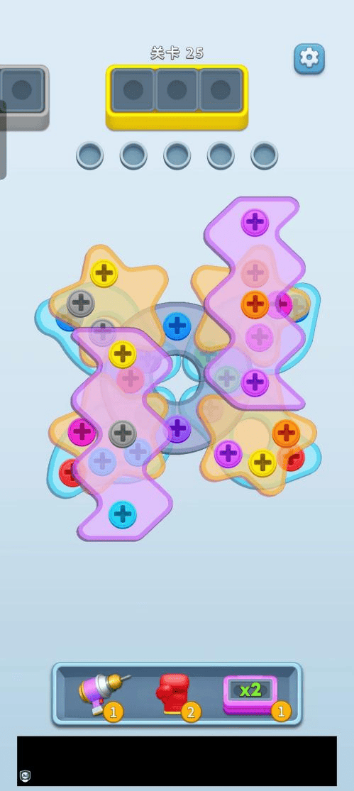 核心玩法上,《Screw Frenzy: ASMR》的拧螺丝加入了挡板的设计,也就是拧完这一层来解锁下一层,参考国内几款热门的拧螺丝小游戏,通常情况下,关卡内会同时内置2个“工具盒”,但《Screw Frenzy: ASMR》每关仅会同时出现一个工具盒(不过能看到下一个工具盒颜色),再加上还有槽位的限制,难度和门槛更高。