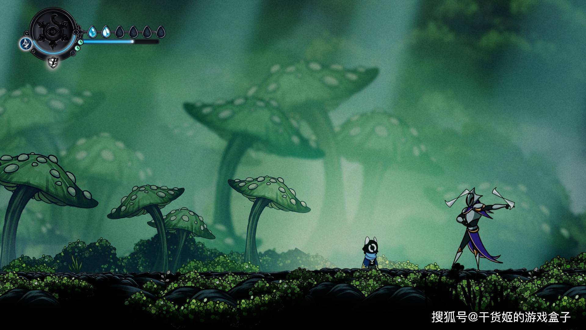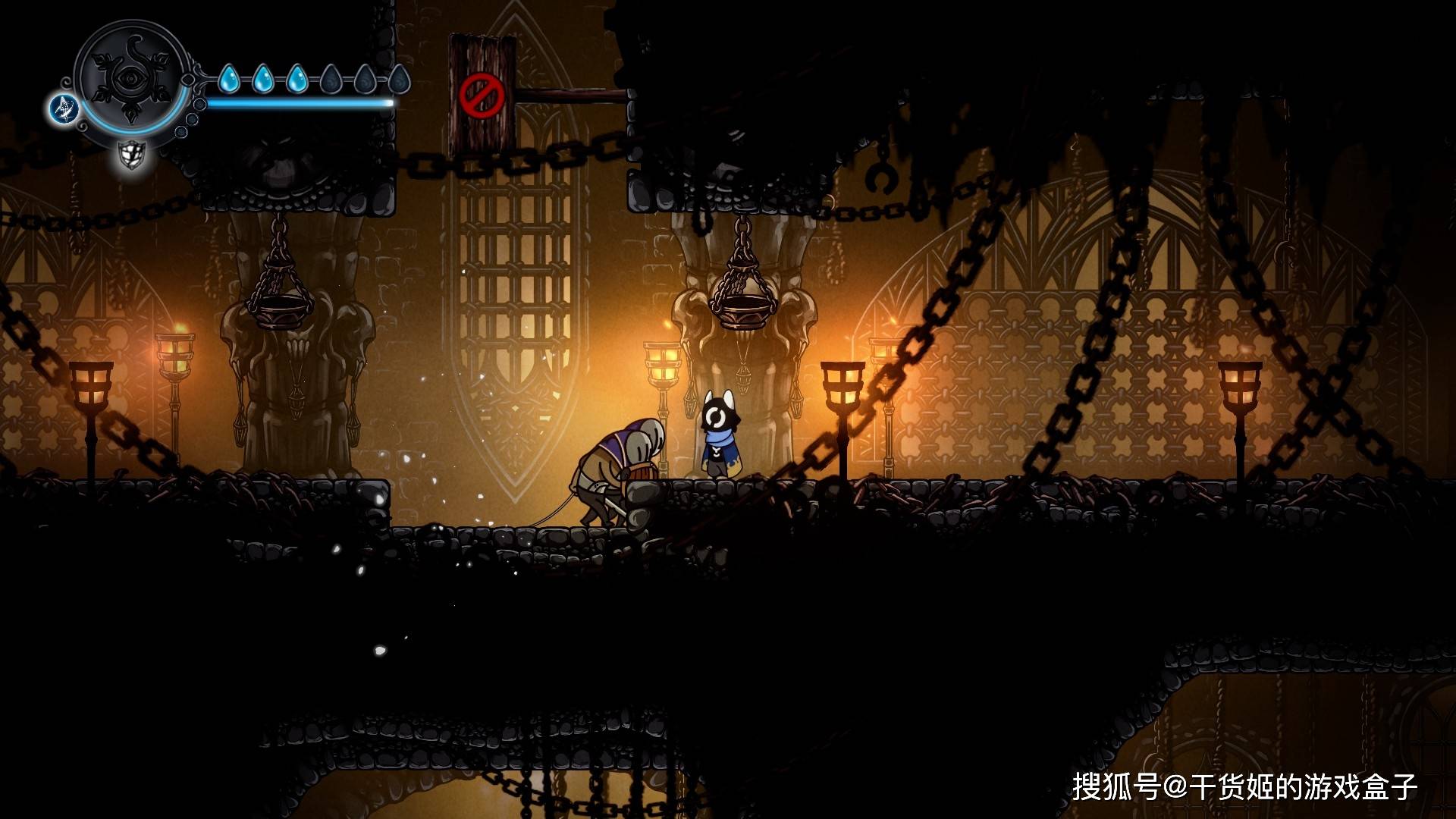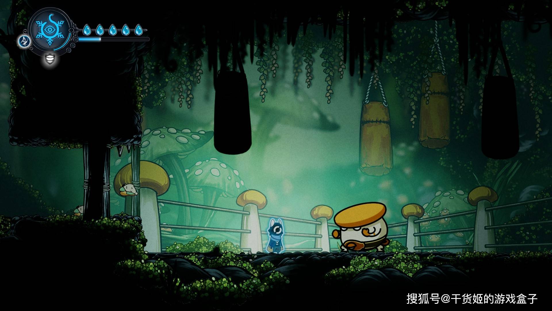 为什么有点小怪有眼珠,有的小怪没有;为什么基地外边直接是苔原,画面一下又跳地牢呢?对于这些虚构层的东西,制作组给出的答案是:放着不管!文字上,本作非常异常顶级直白,在显示认知偏差特点上十分过于给力;画面上,如果玩家仔细看背景能够发现,除了初期地图是严格按照HK式的三段式外,其他地图直接采用的模糊加配饰的做法:虽然不想吐槽,但随机浮空的齿轮实在是太不知所谓了,直接体现了制作组资源不足,当然取舍下来没啥必要,因为此时已经引入大量机关吸引玩家目光,背景跟音乐一样,模糊、不够突出,反而使玩家注意力集中在关卡本身上。