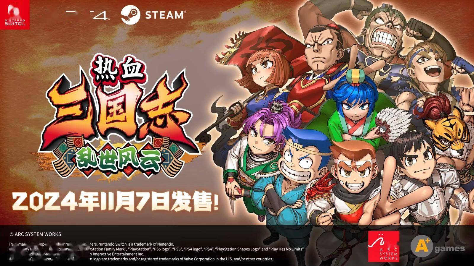 8月9日,Arc System Works公布了《热血三国志乱世风云》的开场动画视频,该作是《热血三国志》系列新作,故事将从“赤壁之战”之后开始,一直到三国演义的高潮“五丈原之战”,包含了100多名《热血》系列人气角色。《热血三国志乱世风云》预计将于11月7日售,登陆Switch、PS4和Steam,支持中文。