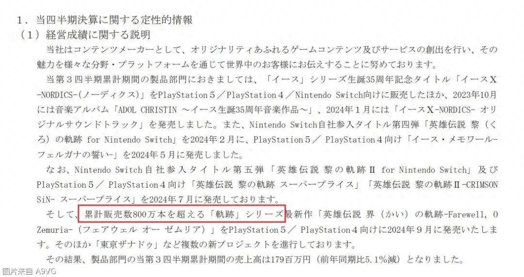 日本Falcom 今日公开的最新一期财报显示,《轨迹》系列累计销量现已突破800万份,此前曾于2022年9月22日公开的信息中宣布销量突破700万份的消息。