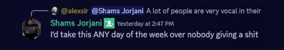 Shams Jorjani 表示“我不在乎一周中每天发生了什么,都会接受。但需要明确的是,现在发生的事情对我来说没有问题,我非常希望玩家能够告诉我们他们喜欢什么,不喜欢什么。”